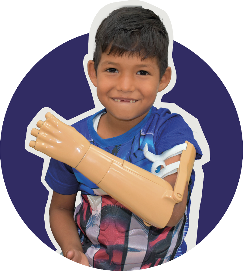 Persona con falta de antebrazo a partir de 6 años de edad; con muñón de 6 a 10 cm debajo del codo, sanado y sin sensibilidad.